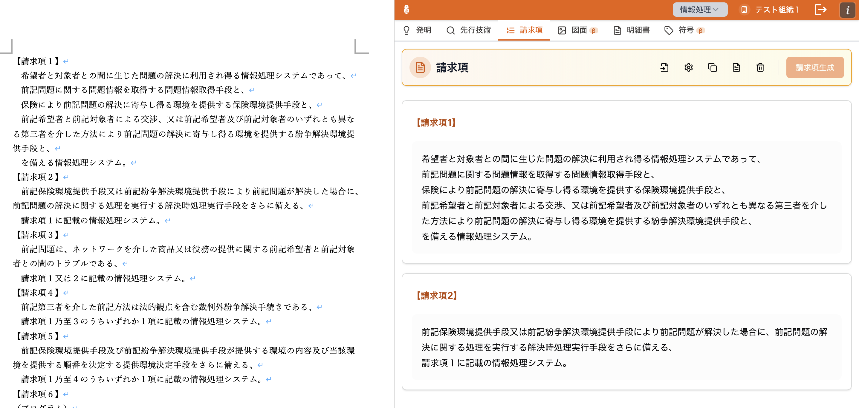 請求項の生成