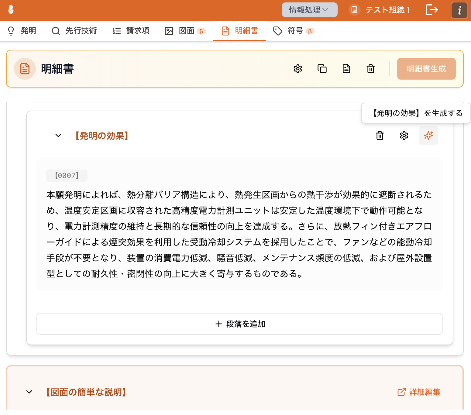 各セクションの歯車アイコン(「○○の設定」)をクリックすると、そのセクション専用の生成設定画面が開きます。