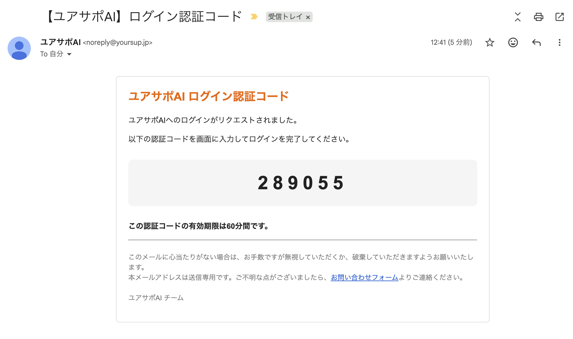 | 再送信 | 60秒のクールダウン後に再送信可能 |