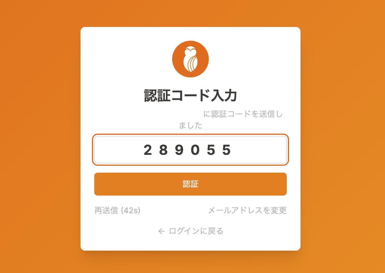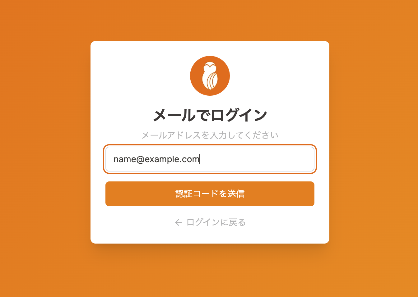 組織への招待メールを受け取った場合も、メールアドレス認証でログインできます。認証コードについて