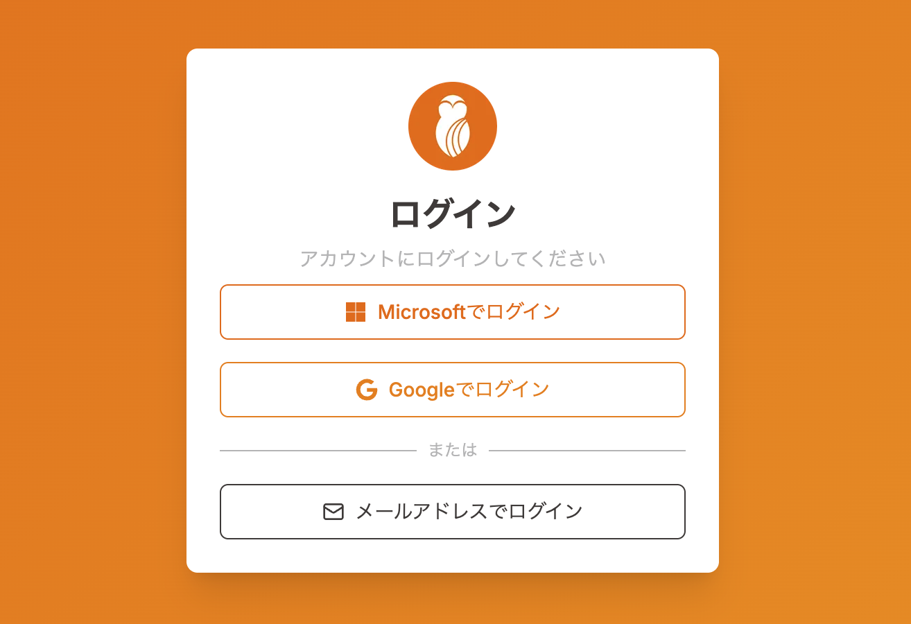 | Microsoft / Google ログイン | メールアドレス認証(OTP) | |